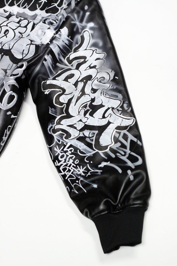 Pu Leather Collared Varsity Jacket.